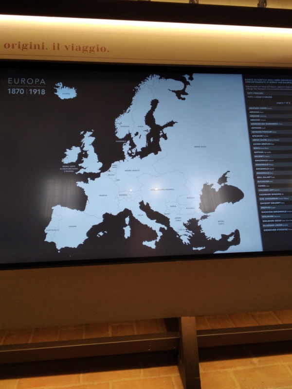 L’allestimento si trova all’interno della ex Chiesa di Sant’Anna, a lato del Memoriale della Deportazione realizzato nel 2006 nell’ambito del progetto Interreg “La memoria delle Alpi”, a pochi passi dalla stazione ferroviaria dalla quale partirono i convogli verso i campi di sterminio nazisti.