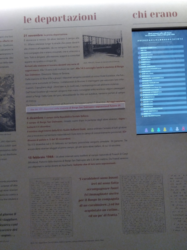 MEMO4345 è un percorso multimediale storico-didattico dove i visitatori, guidati alla conoscenza e alla riflessione sugli elementi della Shoah in Europa, possono approfondire la storia dei 357 ebrei (334 stranieri, 23 italiani) deportati ad Auschwitz dal campo di concentramento attivo a Borgo San Dalmazzo tra il settembre 1943 e il febbraio 1944. Il 15 febbraio del 1944, a Borgo San Dalmazzo, 26 ebrei internati nel campo cittadino raggiungevano la stazione ferroviaria e venivano fatti salire su vagoni-merci. Iniziava così la loro deportazione, via Fossoli (frazione di Carpi, in provincia di Modena), verso il campo di concentramento di Auschwitz. Appena due i sopravvissuti.